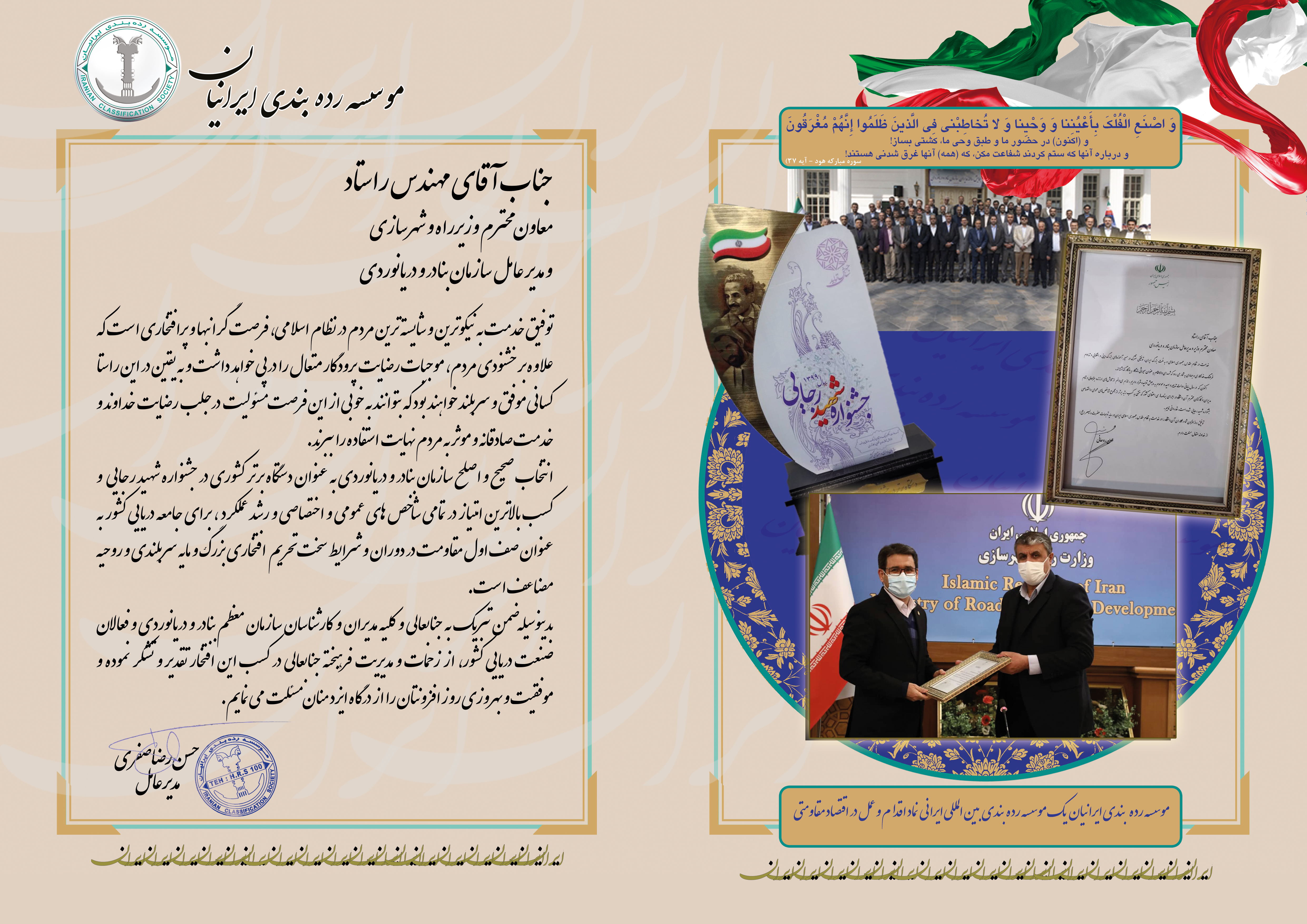 تبریک مدیرعامل موسسه رده بندی ایرانیان به مناسبت انتخاب سازمان بنادر و دریانوردی به عنوان دستگاه برتر کشوری در جشنواره شهید رجایی