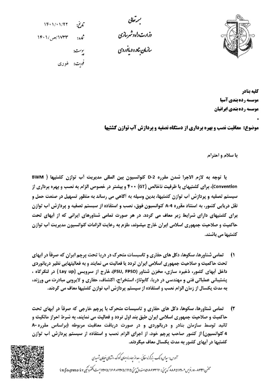New Format of certificates of competency issued by the Islamic Republic of Iran Ports